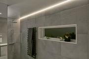 Profiili asennettavaksi katon ja seinän väliin, jolloin saadaan aikaan koristeellinen epäsuora valo seinää pitkin. Saatavana kolme väriä: valkoinen, musta ja alumiini. Huurrettu kupu antaa pehmeämmän valon ilman näkyviä valodiodeja ja sopii täydellisesti, kun valo halutaan kokea tasaisena esimerkiksi seinillä. Kirkas kupu tuottaa suoremman valon ja suuremman valotehokkuuden, josta on hyötyä, kun halutaan toiminnallista valoa, kuten hyllyissä tai työtasoilla. Ratkaisu tarjoaa sekä esteettisyyttä että toiminnallisuutta, joten se on erinomainen valinta ilmapiirin luomiseksi.