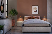 This lamp is wall-mounted and its design combines a modern and natural look. It has a round mounting part and a shade made of perforated metal that lets the light through, creating a soft and interesting light. The top of the lamp is decorated with a cork-like detail that brings warmth and contrast to the metal parts. The whole is clear and fresh, suitable for modern or Scandinavian interiors, for example. Dimmable.