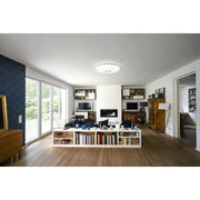 Decorative LED ceiling lamp with WiFi technology, suitable for wireless smart lighting in the home. The color temperature of the light is 3000-6500 K, adjustable white and can also be dimmed. The lamp can be switched on/off and controlled with the LEDVANCE SMART+ WiFi application (Android 4.4 or later, iOS 9.0 or later). Voice control is also possible by linking the app to a voice control system (Google Assistant or Amazon Alexa). It is possible to create your own groups of light sources and control them remotely with an app. For example, you can give the impression of presence in your home even though you are not there. With the push of a button, it is possible to get the desired atmosphere when the pre-programmed light sources are switched on.
