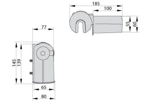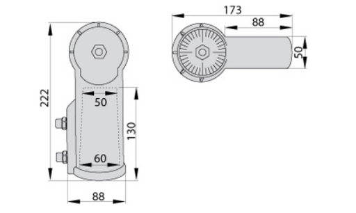 -Rotating Pole Bracket for 60mm pole. Product code: YI-U10000-90 handle adjustment range: -10 ° / + 185 °, the position of the two details of the h...