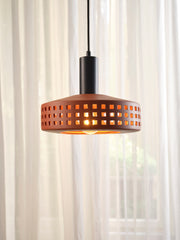 This lamp is a modern and stylish pendant lamp made of clay. Its lampshade has a round shape and square holes that create a beautiful play of light and shadow in the space. The black cord and top of the lamp contrast with the warm terracotta tone. This lamp is well suited for Scandinavian or industrial interiors, for example, where you want to combine natural materials with modern design. Not dimmable.
