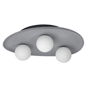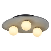Kolmiosainen kattovalaisin, jossa yhdistyvät moderni muotoilu ja rouhea materiaali. Valaisimen ovaalinmuotoinen runko on valmistettu betonista, joka tuo sisustukseen teollista ilmettä ja maanläheistä tuntua. Kolme opaalilasia levittävät valoa pehmeästi ja tasaisesti, tehden valaisimesta täydellisen valinnan esimerkiksi olohuoneeseen, ruokailutilaan tai eteiseen. Pelkistetty ja selkeälinjainen muotoilu sopii niin minimalistiseen kuin skandinaaviseen sisustukseen. Ei himmennettävä.